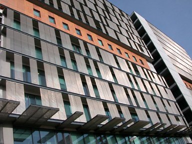 Edelstahlgewebe der Firma Haver & Boecker, Oelde, sind aus der modernen Architektur nicht mehr wegzudenken. Sie haben weltweit ihren festen Platz zum Beispiel als Fassadenelemente.