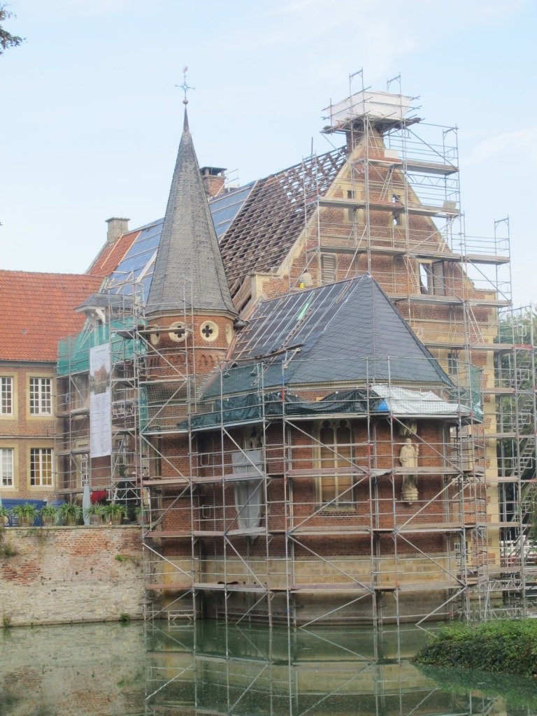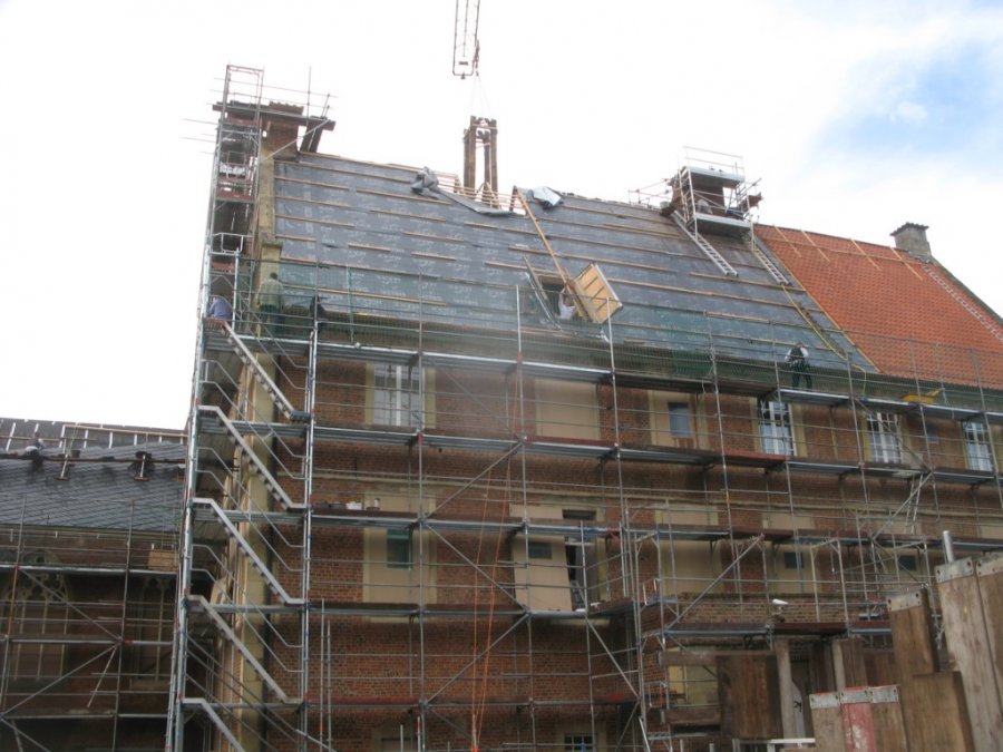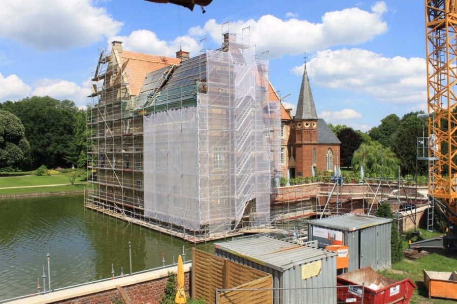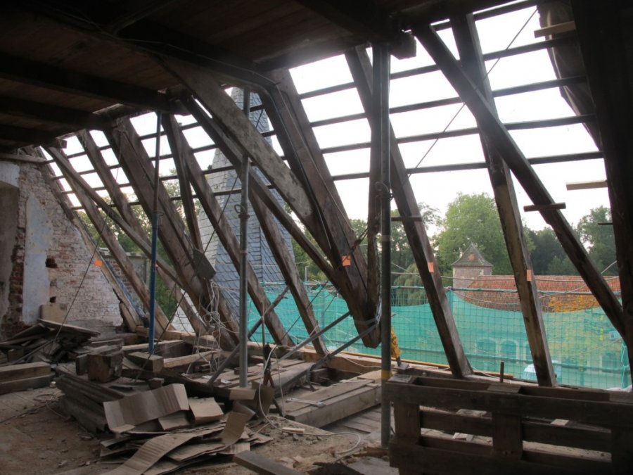 Die stark geschädigte tragende Holzkonstruktion des Daches sowie die Natursteinfassaden des Hauptgebäudes einschließlich der Kapelle werden in zwei Bauabschnitten saniert. Der erste Bauabschnitt wurde bereits fertig gestellt.